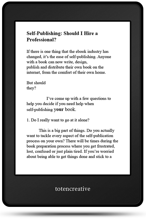 You'll know a Totencreative format when you experience it for yourself. Expertise and passion are easy to spot. Contact me today, so that your book can join the thousands of books I've designed.